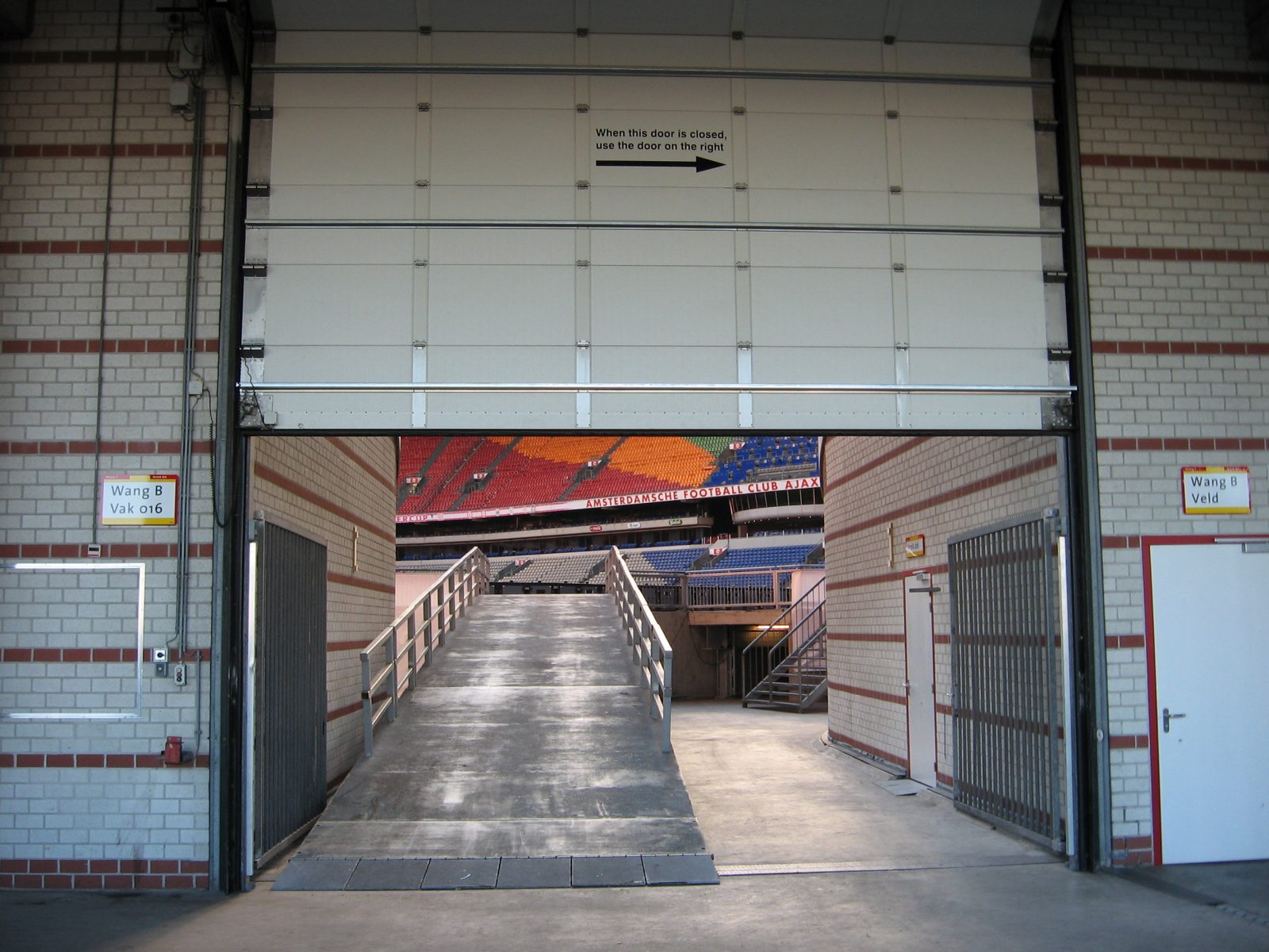 In de Johan Cruijf Arena zijn brandwerende deuren geplaatst. In de hoeken tussen de tribunes bevinden zich grote doorgangen om zo verschillende materialen te kunnen aanleveren voor zowel het grasveld als de verschillende benodigdheden voor de concerten en andere evenementen. De brandvertragende overheaddeuren bevinden zich in deze hoeken van het stadion. Deze deuren functioneren hetzelfde als standaard overheaddeuren, zowel in de situatie in brandscheidingswanden alsmede in buitengevels. Dit levert dus voor het bedrijfsproces nauwelijks beperkingen op, en voldoet volledig aan de gestelde eisen.