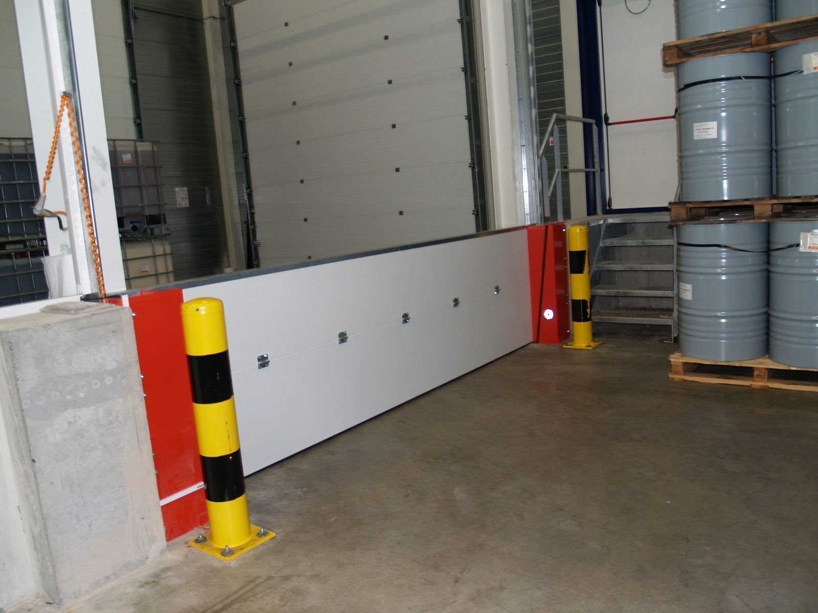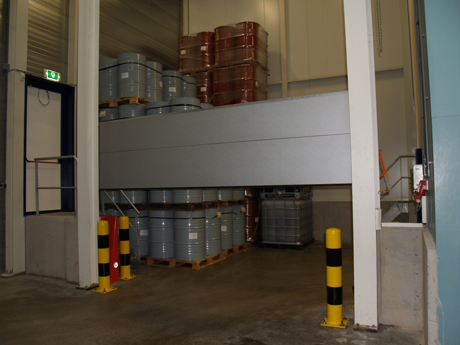 In de opslagruimte, ook bekend als een ADR ruimte, is een vloeistofbarrière van één meter hoogte geplaatst, ter voorkoming van het lekken van schadelijke stoffen in het milieu. Tevens is deze vloeistofbarrière brandwerend, om het uitbreiden van een eventuele vloeistofbrand tegen te gaan.